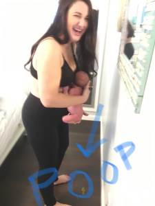 Can I just say that the woman’s body is absolutely incredible? The first photo was taken right before Tucker was born. The second photo was taken a week later. (It looked wayyy easier in all of the cute pinterest pics. Actually holding a naked baby in one hand and a phone in the other is really difficult.) But the real photo is the third one… He pooped all over me, the floor and even the wall. Crying laughing! #reallife
